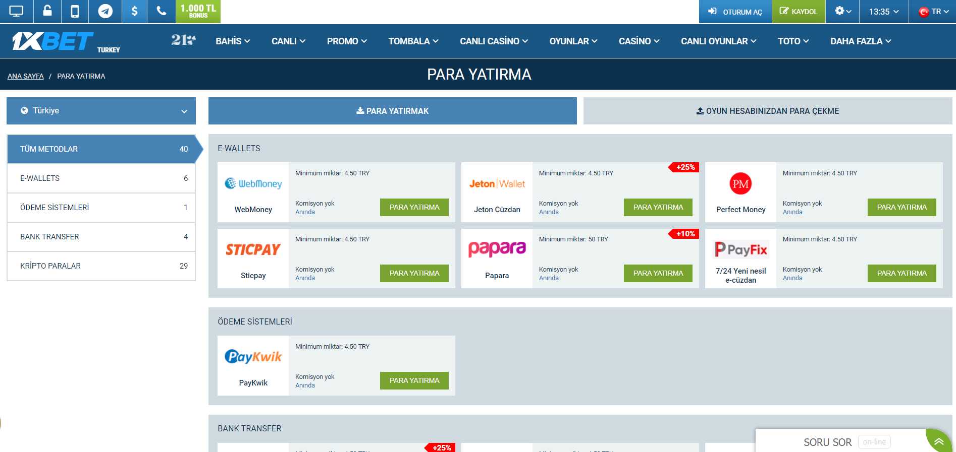 1XBET BONUSU 130 euroKullanılabilir Yatırma Yöntemleri